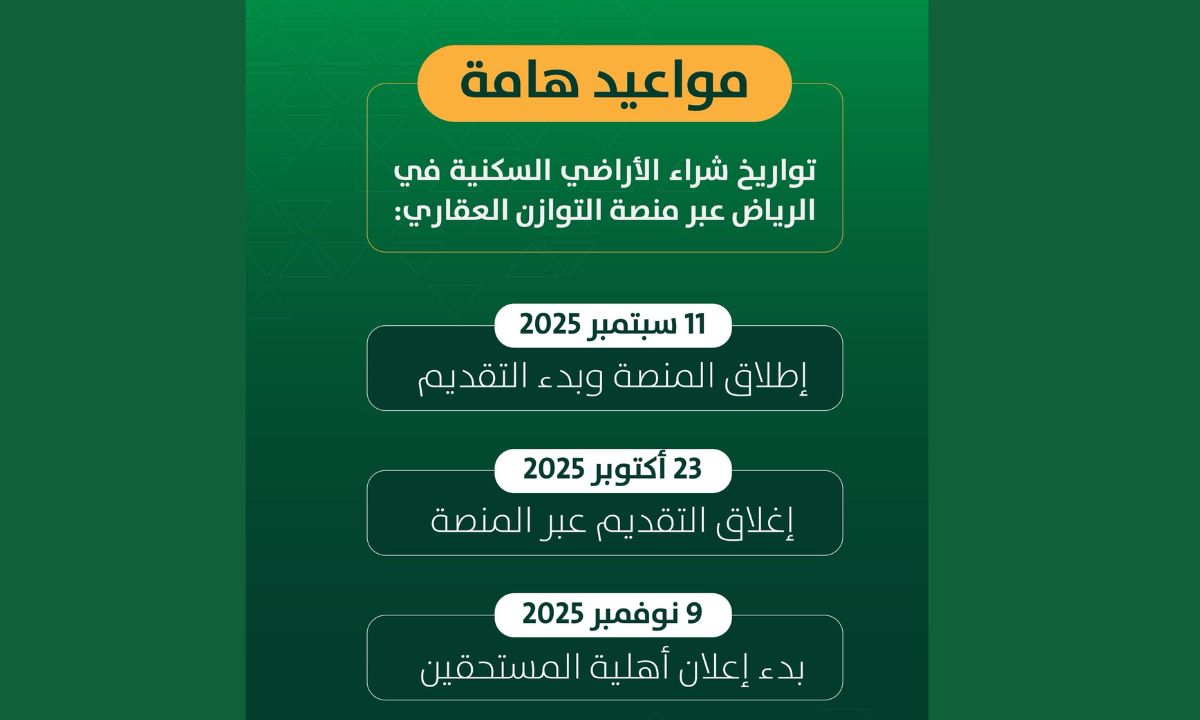 1500 ريال للمتر.. موعد إعلان مستحقي الأراضي 2025 في السعودية عبر منصة التوازن العقاري وخطة طرح 40 ألف قطعة أرض سنويًا