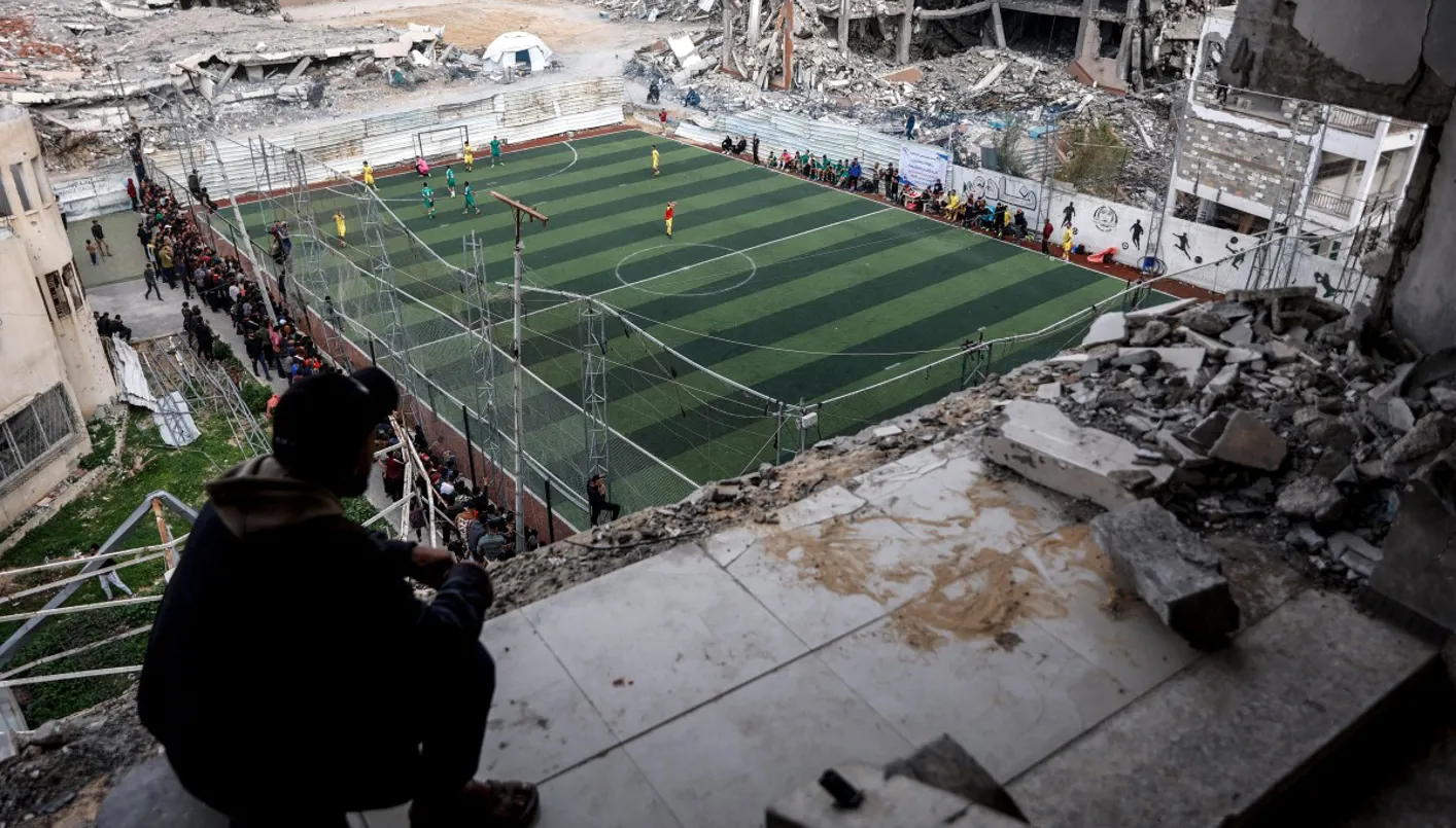 على أرضية خماسية مهترئة وسط أرض قاحلة تحطوها المباني المدمّرة والأنقاض، التقى فريق “شباب جباليا” مع “الصداقة”، في أول بطولة كرة قدم منظّمة تُقام في قطاع غزة منذ أكثر من عامين.