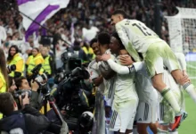 وبعينين دامعتين أنهى حركته راكعاً على ركبتيه متلقّياً تشجيع الجمهور.