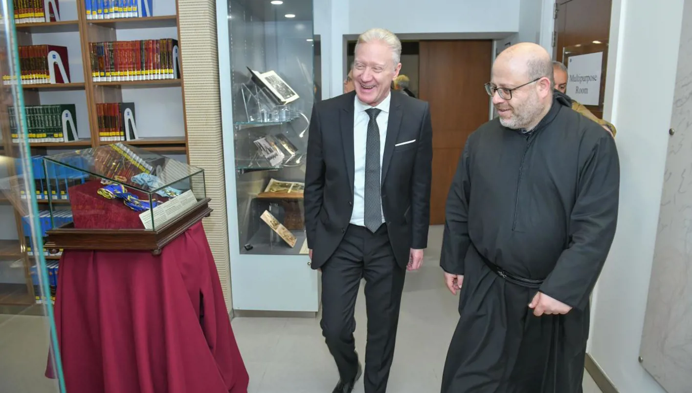 وبعد التوقيع جال رجي في مكتبة الجامعة، اطّلع خلالها على المركز المتخصّص بحفظ الأرشيف وما يضمّه من وثائق وأرشيفات قيّمة.