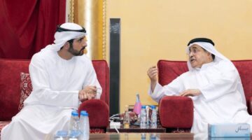 حمدان بن محمد يقدم تعازيه في وفاة الشيخ سلطان بن خالد بن محمد القاسمي