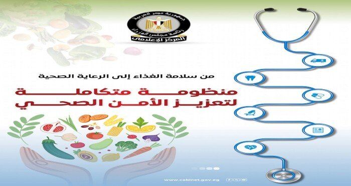 نشر المركز الإعلامي لمجلس الوزراء عددًا من الإنفوجرافات عبر منصاته على مواقع التواصل الاجتماعي، استعرض من خلالها المنظومة المتكاملة لتعزيز الأمن الصحي بدءًا من ضمان سلامة الغذاء وصولًا إلى الرعاية الصحية.