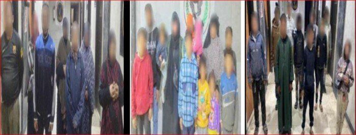 وبصحبتهم 20 حدثا من المعرضين للخطر حال قيامهم ببيع السلع بشكل إلحاحي والتسول، وبمواجهتهم، اعترفوا بنشاطهم الإجرامي.