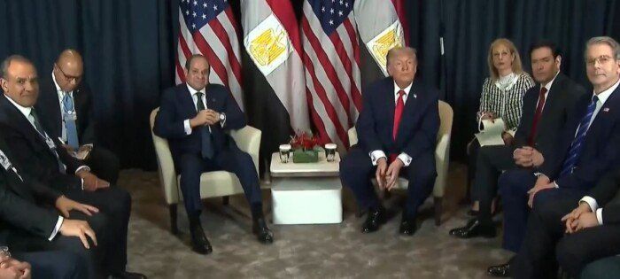 وصرح المتحدث الرسمي باسم رئاسة الجمهورية بأن المباحثات تناولت العلاقات الثنائية بين مصر والولايات المتحدة، حيث أكد الرئيس حرص مصر على الارتقاء بهذه العلاقات إلى مستوى الشراكة الاستراتيجية الشاملة، معربًا عن تطلع مصر لتعزيز التعاون الاقتصادي والتجاري من خلال عقد الدورة الثانية من المنتدى الاقتصادي المصري الأمريكي خلال عام 2026.