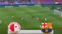 بدأت المباراة بإيقاع سريع من جانب برشلونة، الذي حاول فرض أسلوبه القائم على الاستحواذ وبناء الهجمات من الخلف، في حين اعتمد سلافيا براغ على التنظيم الدفاعي والضغط في وسط الملعب لإفساد تحركات لاعبي الفريق الكتالوني.