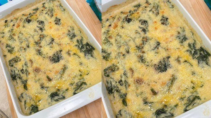 - ثم يخلط جزء من البشاميل مع السبانخ، ثم يوضع الخليط في صينية مدهونة، ويغطى بباقي كمية البشاميل.