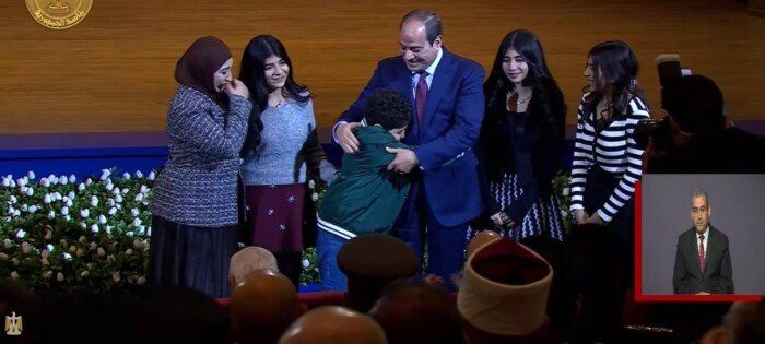 ورد الرئيس عبد الفتاح السيسي، خلال الاحتفال بالذكرى الـ74 لعيد الشرطة: «أنا اللي بحبك وسعيد بيك جدًا جدًا، واتشرف إني أسلم عليك يا علي»، كما التقطت أسرة الشهيد العقيد رامي علي هلال صورة تذكارية مع الرئيس السيسي، تعبيرًا عن الوفاء والتقدير لشجاعة وتضحيات والدهم.