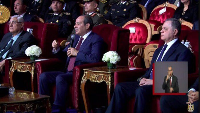 وتابع الرئيس السيسي: «إحنا مش بنعمل كدا، علشان نحمي نظام، إحنا بنعمل دا علشان نحمي دولة بشعبها، ومش لحماية شخص لحماية شعب، بل لحماية دولة بمخاطر وتهديدات رأيناها على مدار السنوات الماضية».