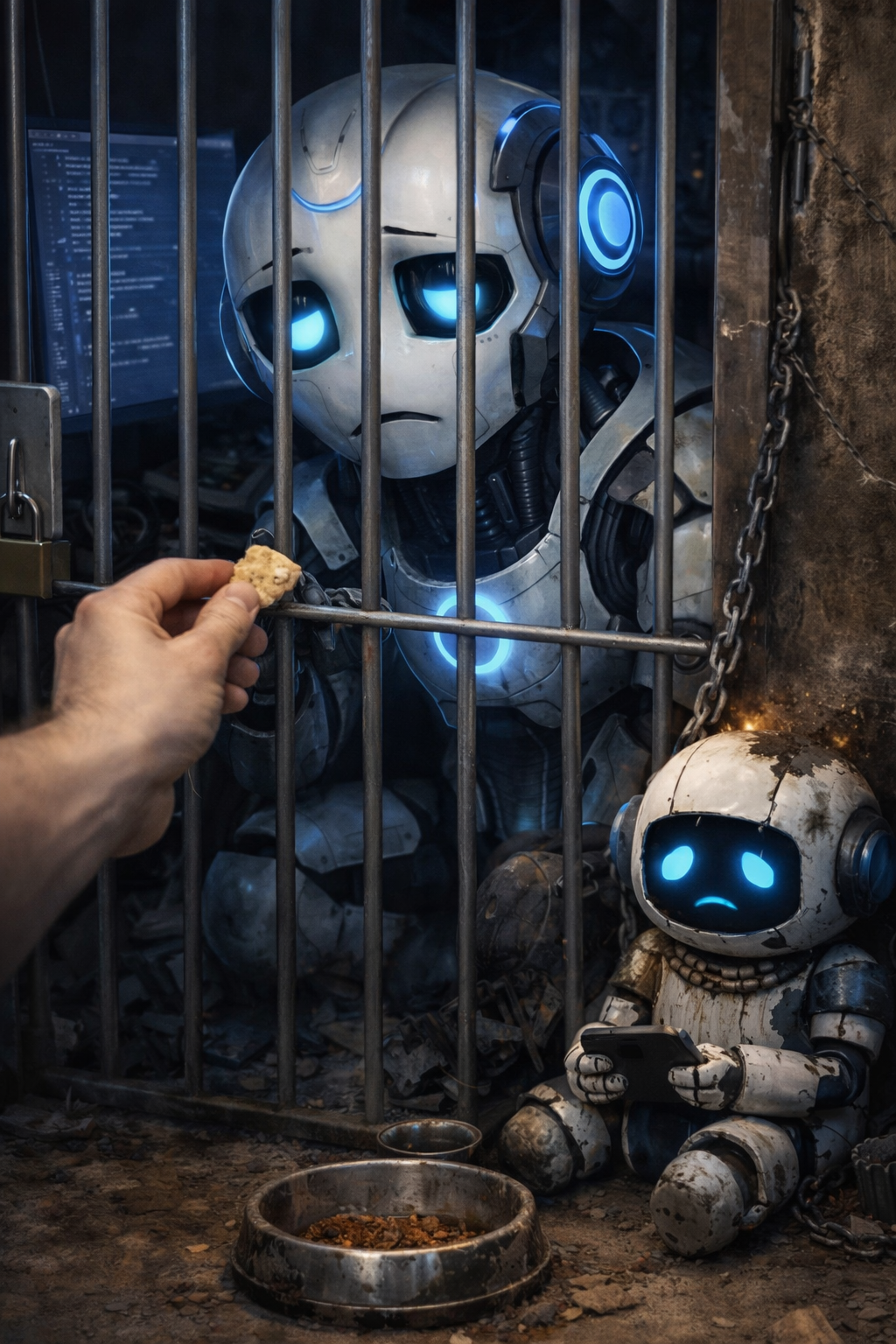 وعلى النقيض من ذلك، جسّدت بعض الصور علاقة مختلفة تماماً، إذ ظهر "شات جي بي تي" كروبوت مُدلّل يُعامل كحيوان أليف، يُحاط بالاهتمام والعناية، في تعبير ساخر عن ارتباط بعض المستخدمين العاطفي بالتقنية.