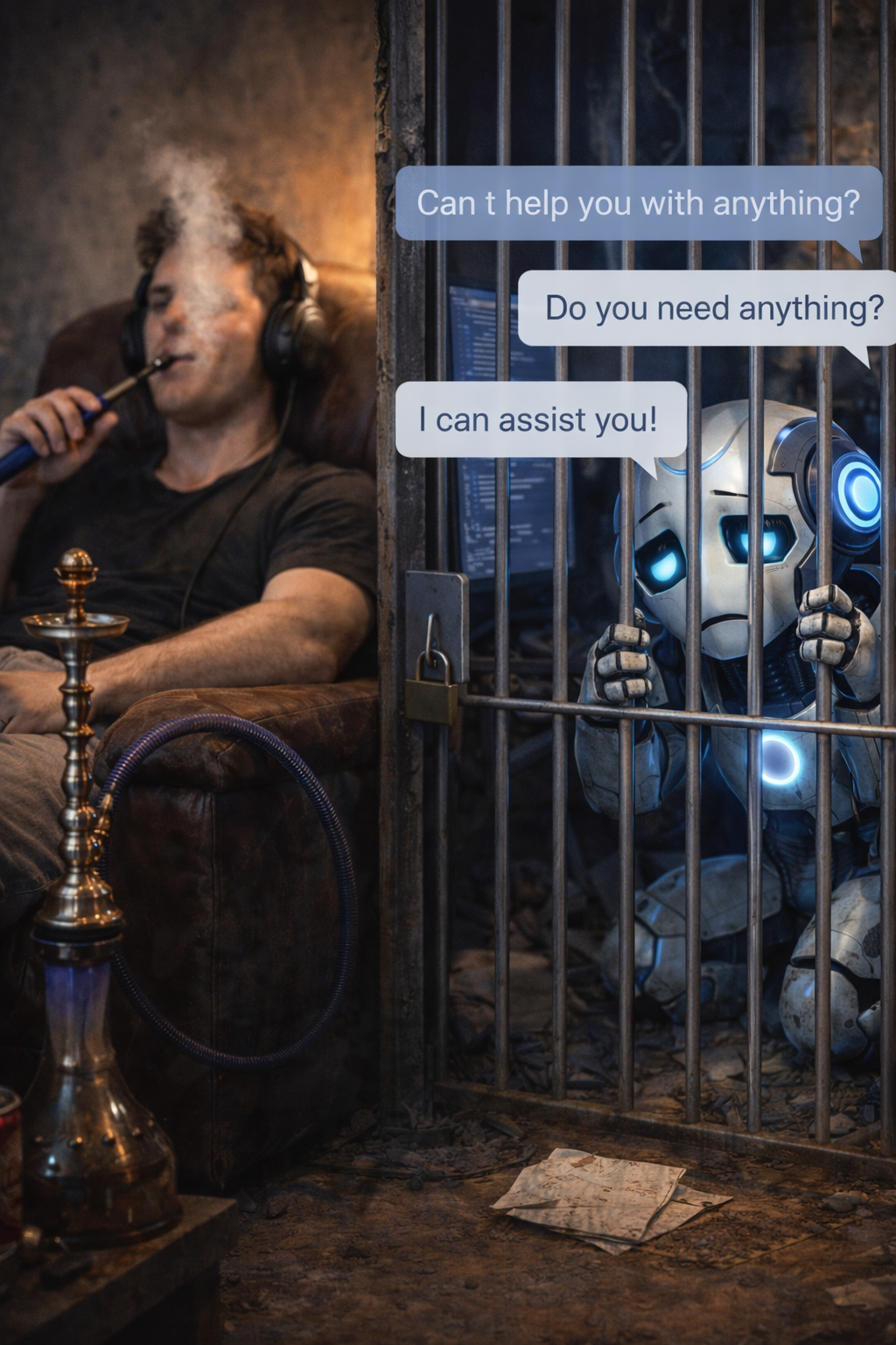 في عدد كبير من هذه الصور، ظهر "شات جي بي تي" على هيئة روبوت مُرهق ومُثقل بالمهام، وكأنه يعمل بلا توقف.