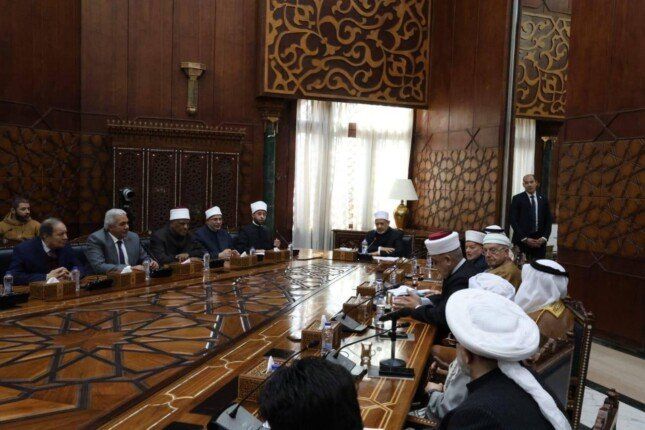 استقبل فضيلة الأمام الأكبر الدكتور أحمد الطيب، شيخ الأزهر الشريف، ضيوف مصر المشاركين في المؤتمر الدولي السادس والثلاثين للمجلس الأعلى للشئون الإسلامية في زيارة بصحبة الدكتور أسامة الأزهري، وزير الأوقاف، رئيس المجلس الأعلى للشئون الإسلامية.