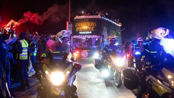 حظي المنتخب السنغالي لكرة القدم باستقبال الأبطال، في أعقاب التتويج بلقب بطولة أمم أفريقيا، حيث كان في استقبالهم رئيس الدولة وبعض المسؤولين الكبار لدى وصولهم لداكار مساء الاثنين، قبل أن يقوموا بجولة قصيرة في شوارع المدينة على متن حافلة مكشوفة.
