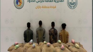 حرس الحدود بجازان يقبض على 4 إثيوبيين لتهريبهم 200 كيلوجرامًا من القات المخدر