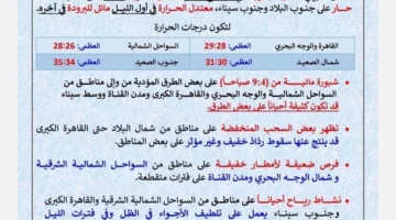 الأرصاد الجوية تكشف تفاصيل مثيرة عن حالة الطقس غدا بما في ذلك التغيرات المتوقعة في درجات الحرارة