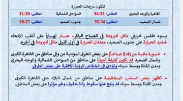 حالة الطقس يوم الخميس المقبل تشهد ضبابًا وسحبًا منخفضة وفقًا لتوقعات الأرصاد الجوية الجديدة