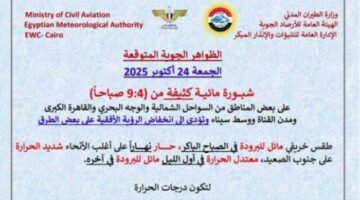 توقعات دقيقة تكشف عن تأثيرات الشبورة الكثيفة على حالة الطقس في مصر اليوم الجمعة 24 أكتوبر 2025