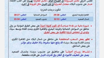 توقعات شاملة لدرجات الحرارة في القاهرة الكبرى والمحافظات خلال اليومين المقبلين وحالة الطقس المتوقعة
