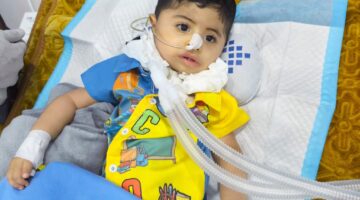 مجد، الطفل الشجاع، يغادر مستشفى عدن التعاوني الخيري لإجراء تحاليل طبية في السعودية