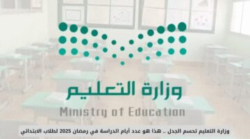 وزارة التعليم السعودية تحدد عدد أيام الدراسة لطلاب الابتدائي في رمضان 2025